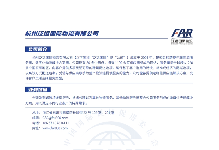 邮编:310022邮箱:csc@far800.com地址:中国浙江省杭州市拱墅区长城街22号201室